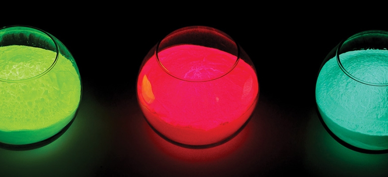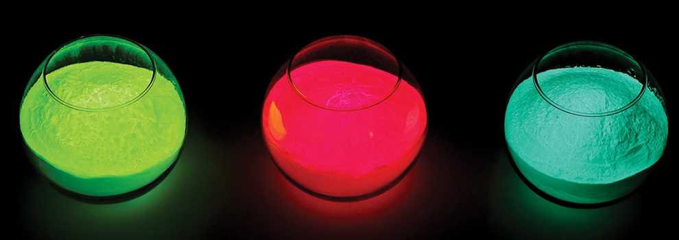 Além da cor natural, também está disponível numa variedade de cores fluorescentes à luz do dia, em versões de partículas finas e nas fosforescências amarela e laranja.